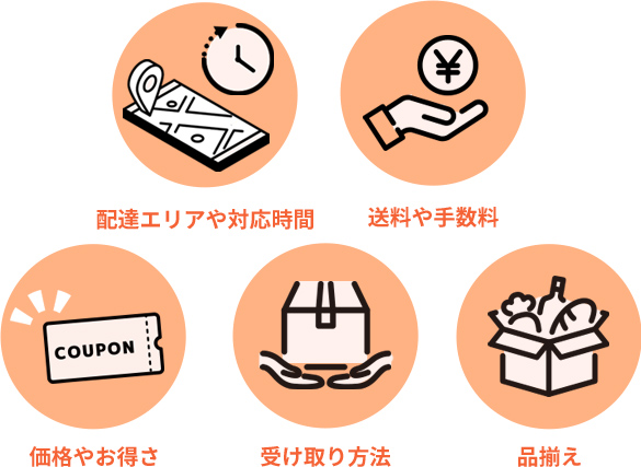 その他にも、自宅が配送対象地域に含まれているか、また仕事や育児で時間が限られている方にとっては、希望する時間帯に配達してもらえるかは重要です。